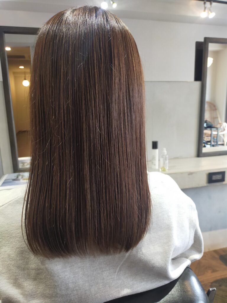 普通の縮毛矯正ストレートは髪の毛に対して負担の強い薬を使いますので、特に繰り返しカラーをしている方であったりとか、ブリーチをしている方とかだと、どうしてもそれ以上を髪の毛を痛ませてしまうと、髪の毛が途中で切れてしまったり、ダメージによって元のコンディションよりも扱いにくい状態になってしまうので、美容室側でもよくお断りさせていただくこともあったりするのですが、酸性ストレートならすでに髪の毛にダメージがあるコンディションのお客様でも、その状態からストーレトパーマを当てていくことができます!