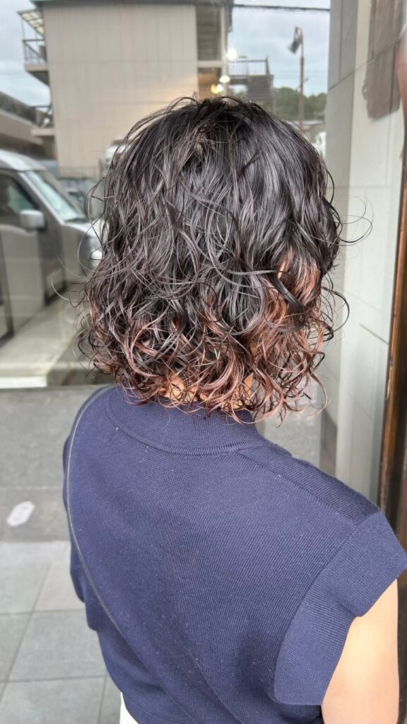 朝、軽く髪を濡らしてからドライヤーでラフに乾かし、オイルやバームを毛先にもみ込むようにつけるだけでOK。パーマのカールが自然に動きを作り出してくれるので、コテいらずでこなれた仕上がりになります。