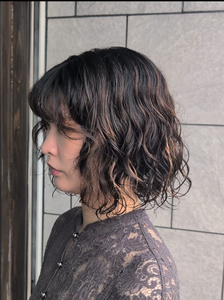 【池田市石橋】濡れ感ボブ×ゆる質感パーマ|柔らかい揺れをつくる“大人女性の抜け感スタイル”