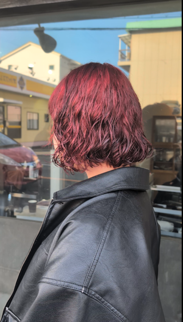 ブリーチ1回で叶う、「赤系カラー×パーマボブ」です。