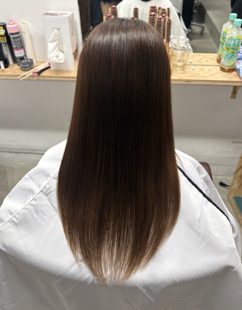 ストレートパーマや縮毛矯正のように真っ直ぐにする施術ではないので、自然な柔らかさを残しながら扱いやすくなるのが特徴です。