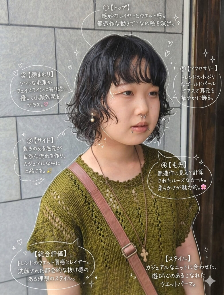 今回は、カジュアルな中にも洗練されたエッセンスを詰め込んだ、**「大人のウエットパーマ・ボブ」**をご紹介します。